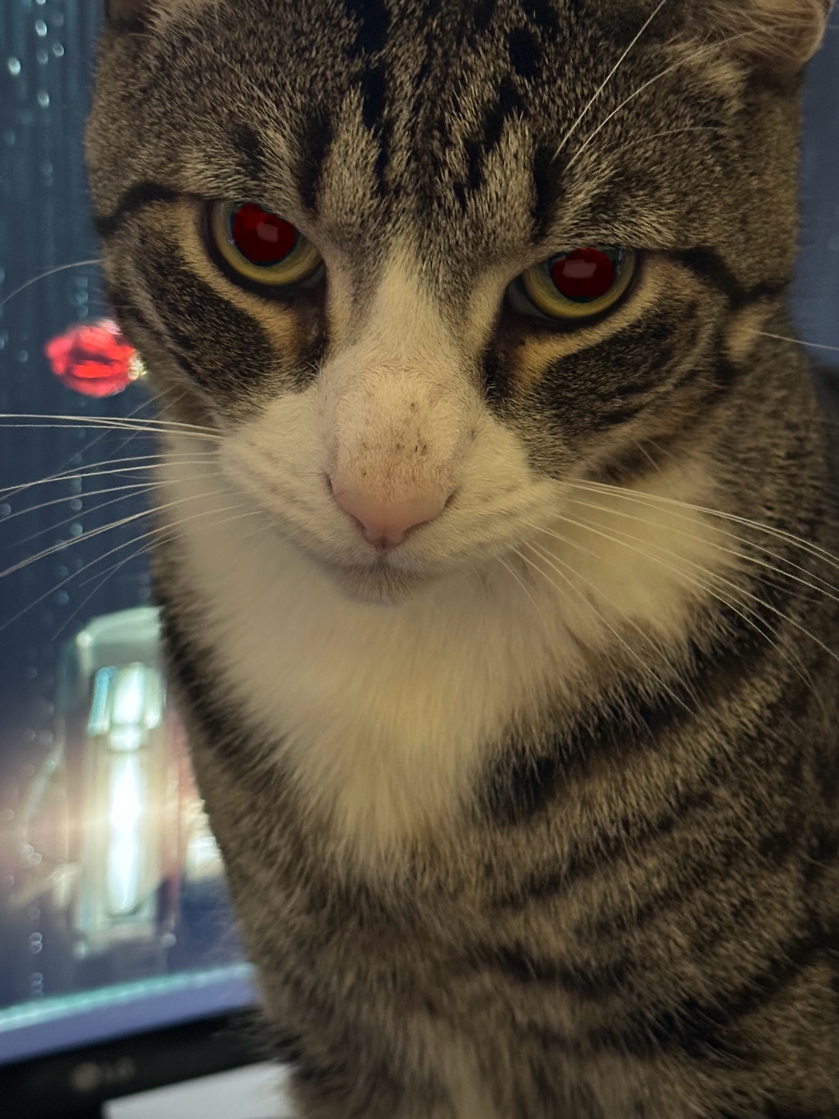 So I happened to stroke his coat I call him Tom aka tomcat. Well when I come inside I am greeted by both of my cats and as I take off my shoes and lean down to great my special boy I offer my hand that I know that had stroked Tom. (Mind you Tom had been inside my apartment 3 times a few years ago) this was how I understood that they just can’t get along.