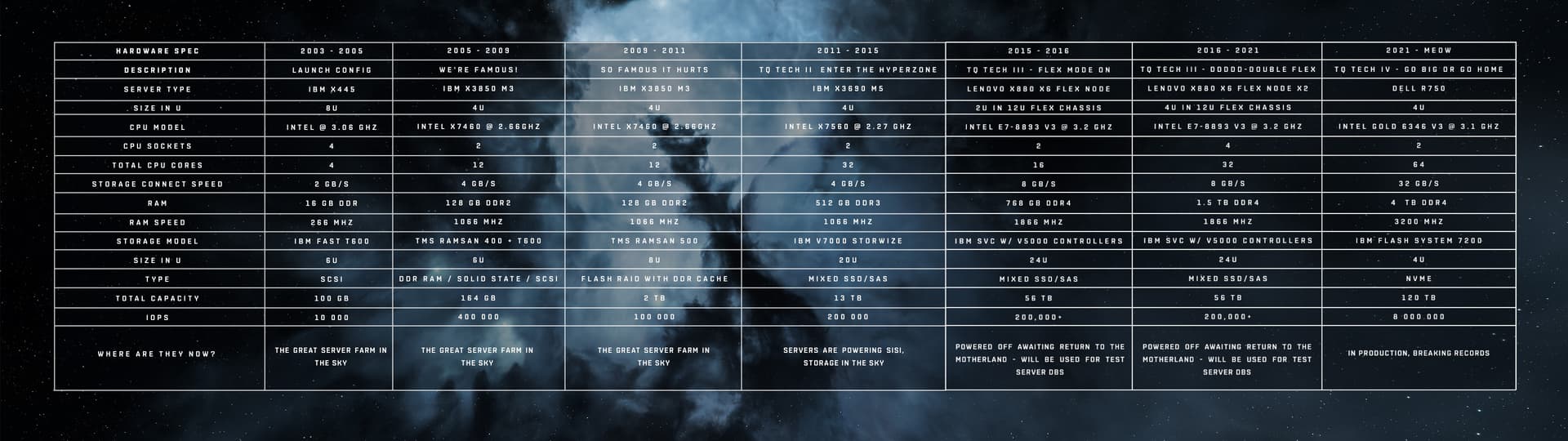 It’s still a bit unclear what the complete worldwide hardware setup is for Eve Online if anyone can shed any light on this that would be great, thanks.
