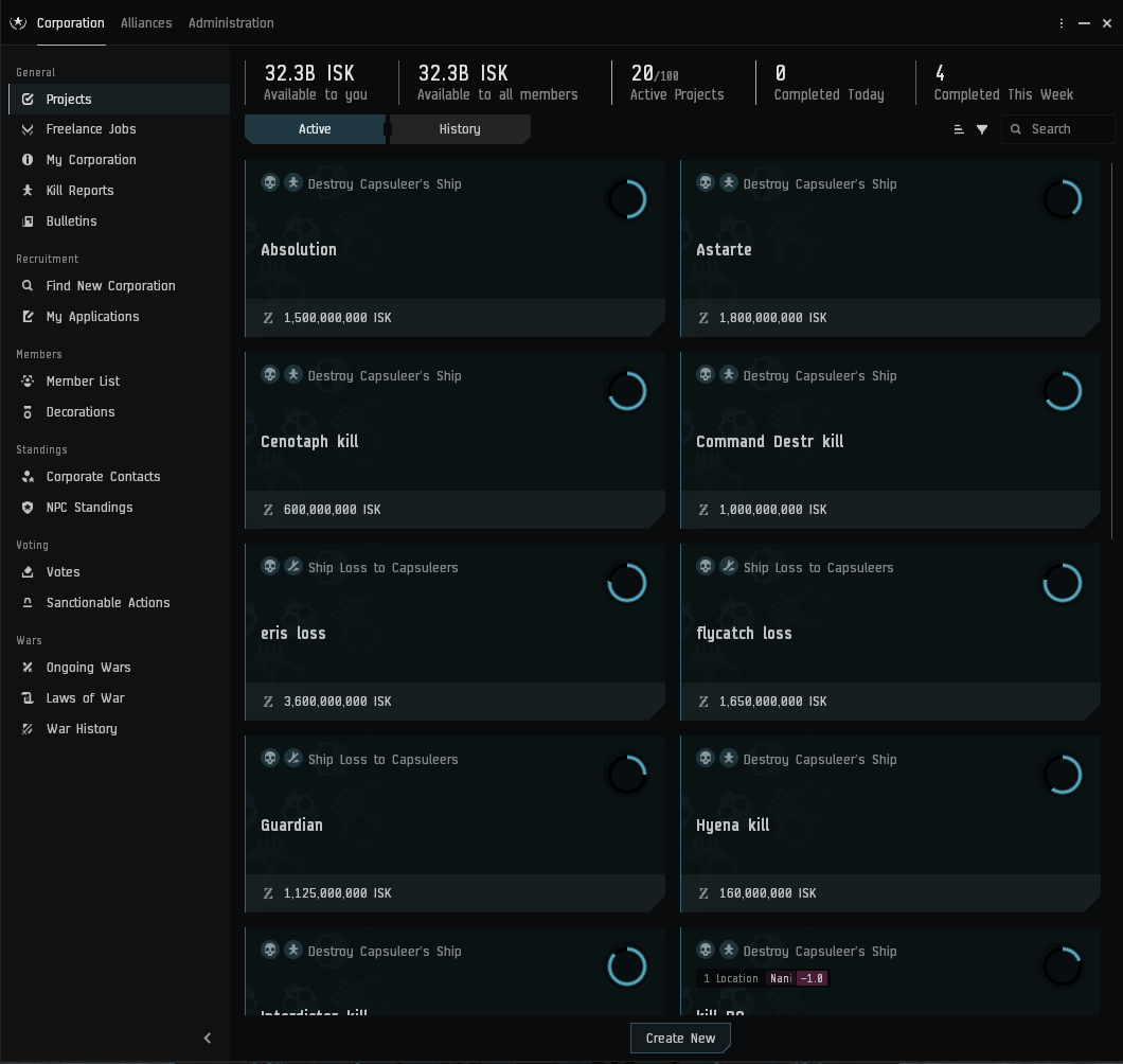 We have open community with recruitment, corp projects and we are high activity group of players