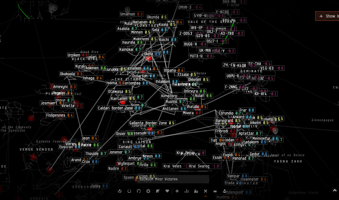 I wish the system colours ( the same ones that appear on the ârouteâ and in the overview ) for any system would also appear in space itself. In space, all gates are just white, as is their name. I think every distant gate should be coloured ( and the name too ) with the same colour thatâs on the ârouteâ map. It would be a proper visual representation of whatâs already in the overview.
