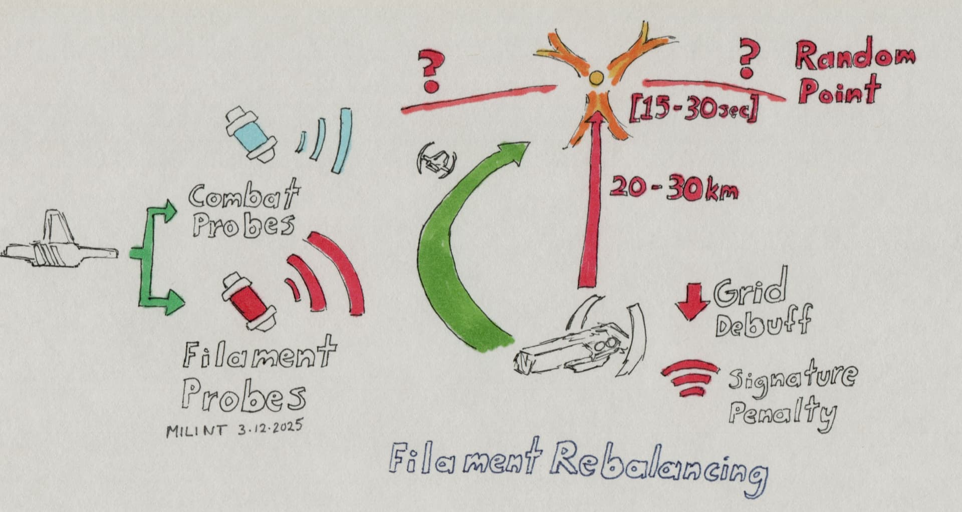 The projected concepts for Specialized Probes. These probes specifically focus down on particular content by type. Where as the core probe just reveals any cosmic signature. And the combat probe currently can scan down cosmic signatures (inefficiently) and player ships, structures, and NPC ships.These Projected Concepts for Specialist Probes.
