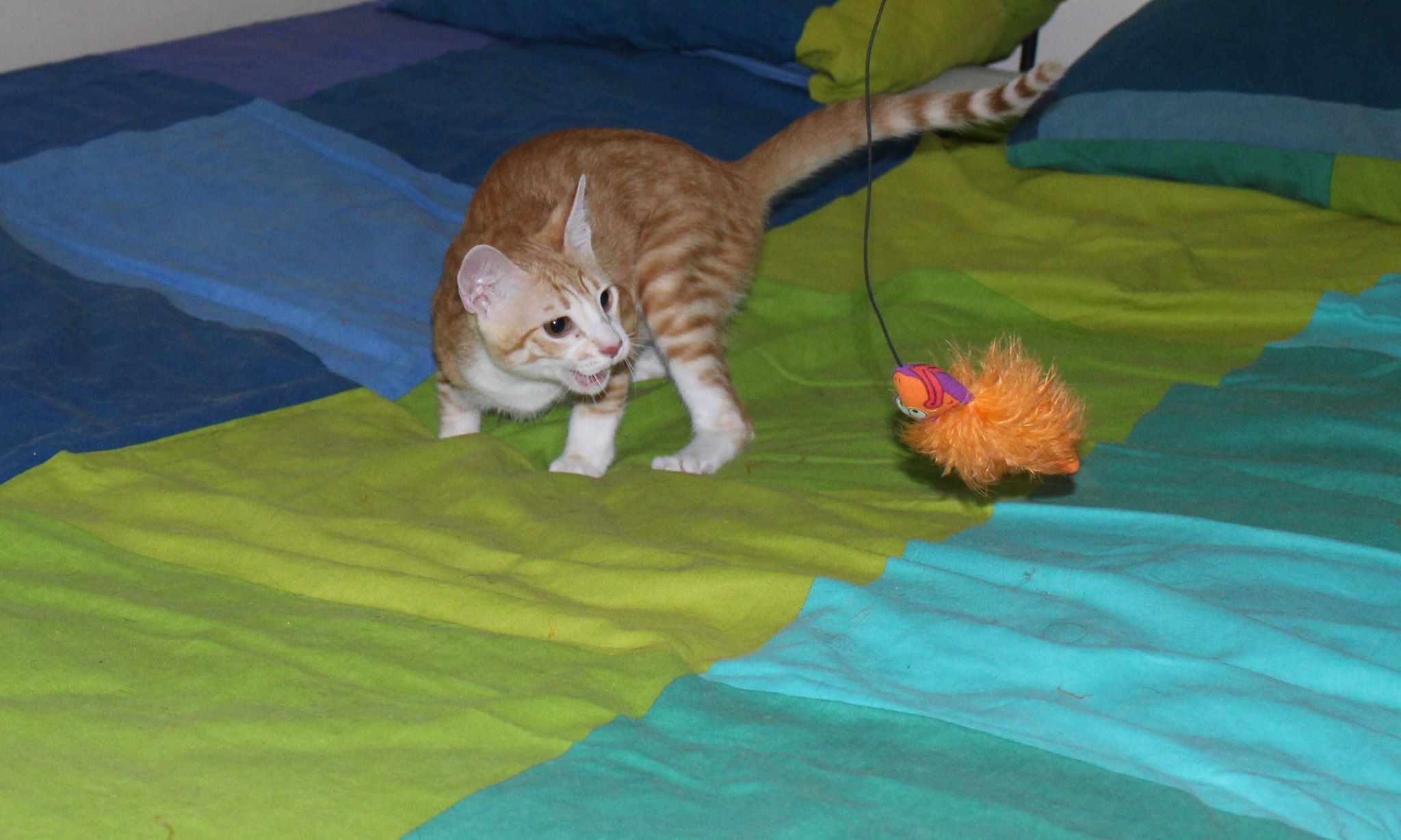 Now after 4 months he is as big as my forearm, even a bit bigger by now, and he is happy to play around with my older cat that has been around for 4 years