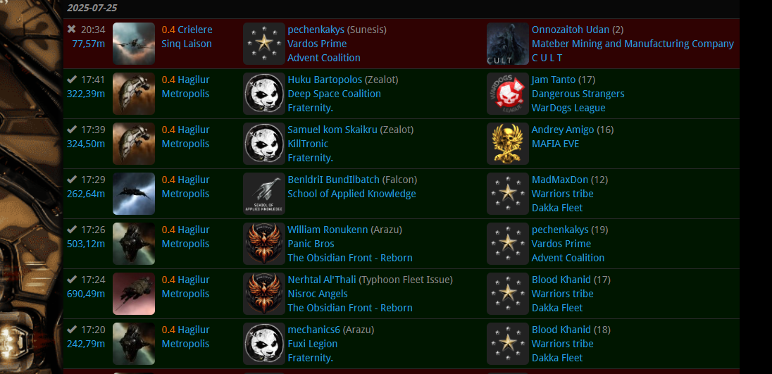 А ведь все начиналось с того, что август обнаружил дейлик на убийство капсулиров и попытался на этом фоне нарекрутить к себе людей, а потом пошло-поехало и оказалось, что шатлы убиваемые через дейлик увеличивают килкаунт, а дальше ух, дальше можно стать топ-1 пипером по зкб. Но чот не вышло.