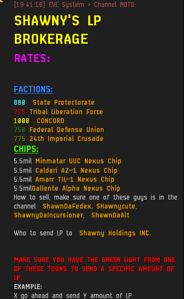 LP , valued at up to 2k isk/LP , was a greater reward than the isk payments. using LP also avoided a large isk-faucet, and required player involvement to get items that cannot be acquired any other way.